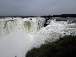 最大の見所「悪魔の喉笛(Garganta del Diablo)」。 凄まじい轟音と共に、膨大な量の水が真っ逆さまに落ちていく様は、まさに圧巻。舞い上がる水飛沫と、あちこちにかかる鮮やかな虹。 自然が作り出す圧倒的なエネルギーを前に、私たちはただ言葉を失い、立ち尽くすばかりでした。